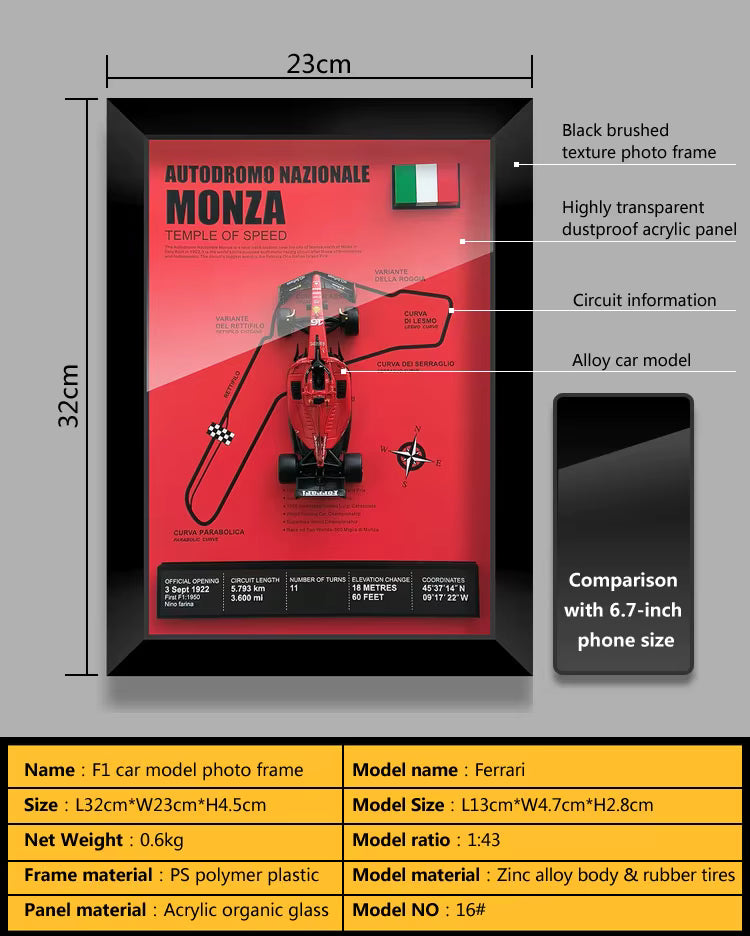 Your Frameology comes with 4 screws to secure the car in place. Want to display it differently or let it roll? Just unscrew and release.